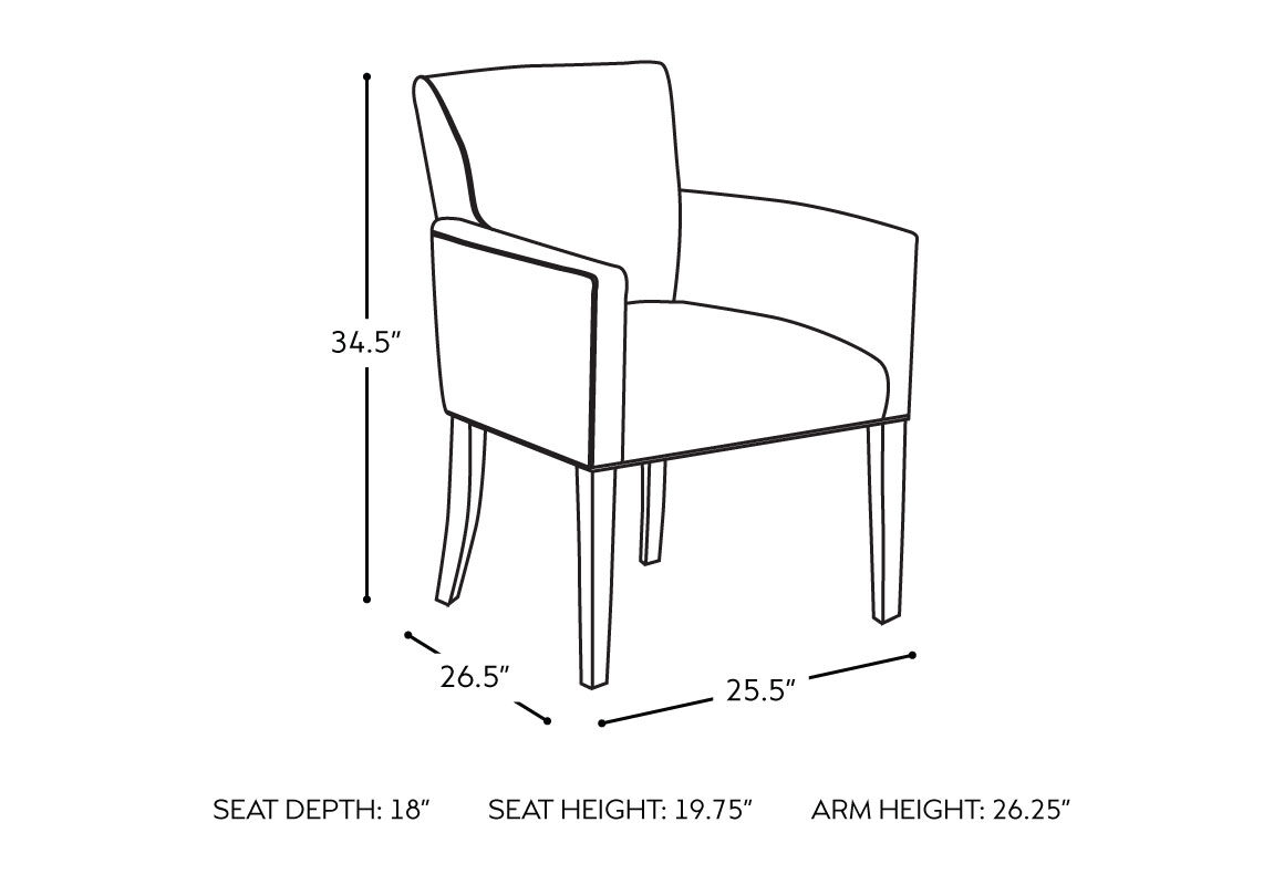 The epitome of comfort and style, this arm chair is equally at home around your dining table as it is tucked into a cozy corner of the den or bedroom. Or maybe it’s the perfect accent for your living room or foyer. Designed for a relaxing experience, the entire chair is perfectly padded and upholstered, with curves that hug the body. Personalize it with your choice of fabric from hundreds of designs and colours and select the wood finish for the legs. Then, just pull up a chair and enjoy your inspired design!