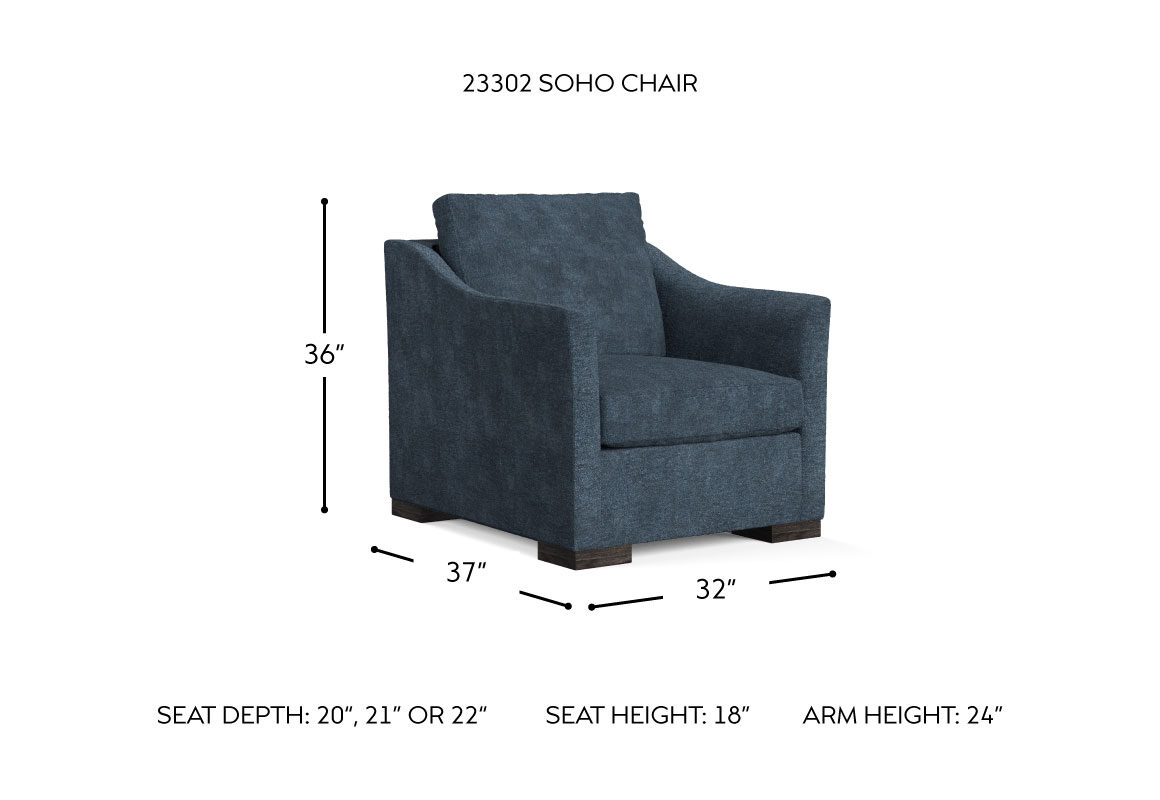 The Soho chair is a fresh take on clean, contemporary design. This chair features modern, thick, square legs, and offers two unique arm styles to adapt to your style as well as three optional seat depths to optimize comfort for even the most petite among us. This ultra-custom piece is completed with a feather and fiber blend, loose back cushions, and exquisite topstitching. With a versatile and modern design, Soho is just the chair you’ve been looking for.