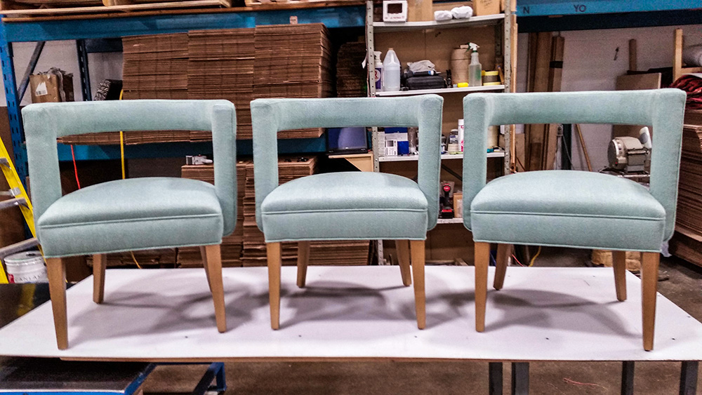 Our team of experienced upholsterers stitch, staple, and nail your cover of choice onto the body of your chair, ensuring every detail is paid attention to, from pattern matching and combination upholstery to tight seams and consistent workmanship.
